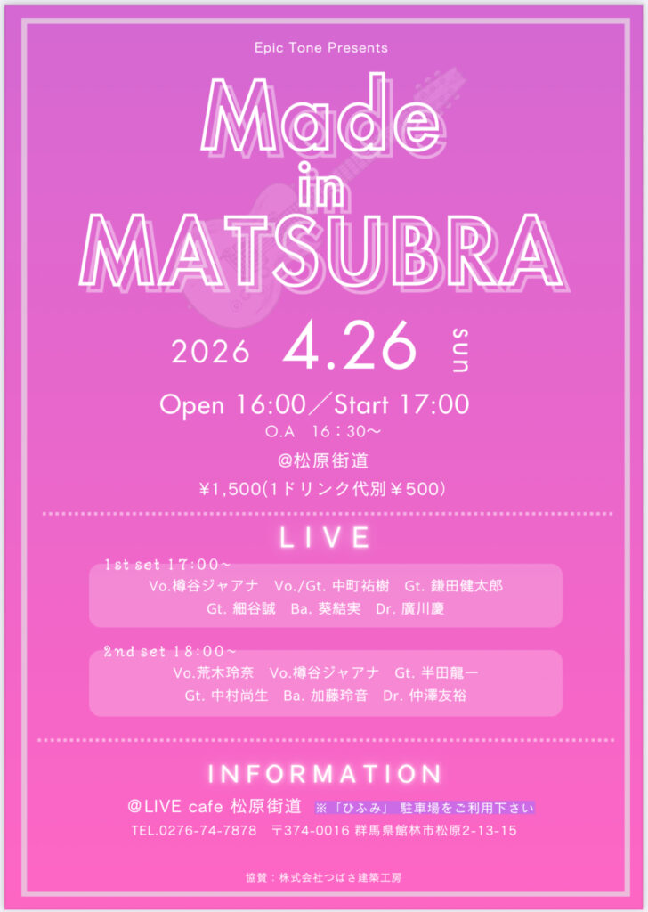 当教室講師ならびに一部生徒が、ライブに出演いたしますのでご案内申し上げます。